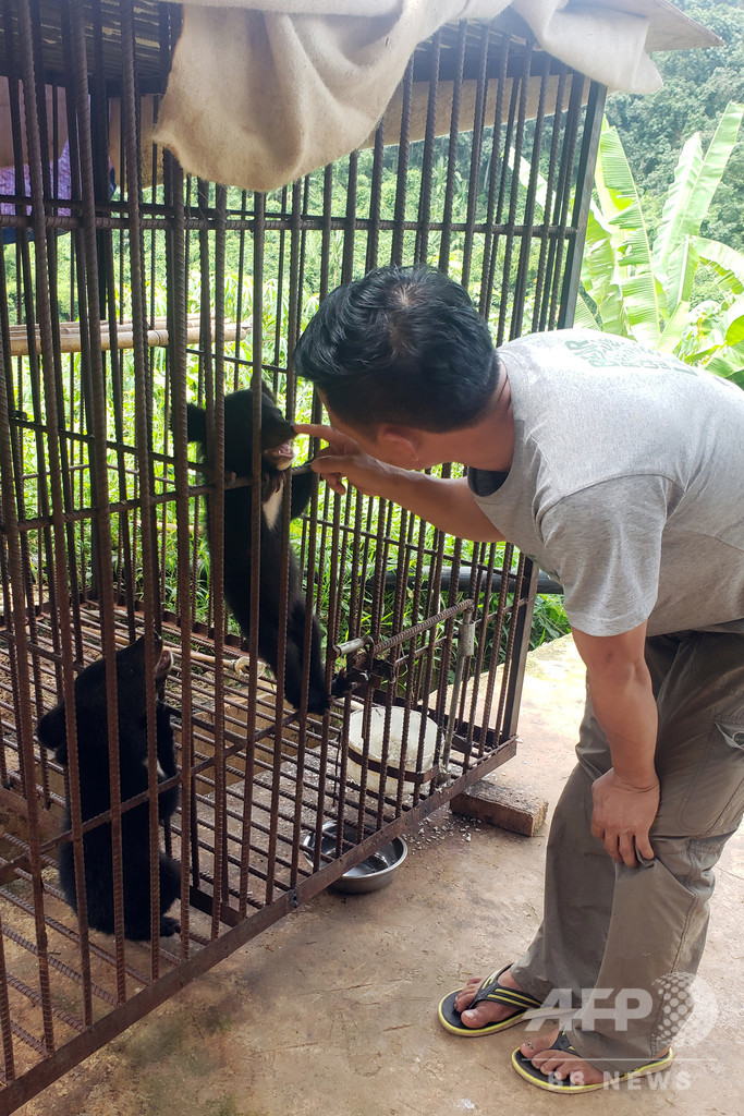 ラオスとベトナムの野生動物当局は、切開を伴う痛ましい胆汁採取の慣習を取り締まってきたが、クマの飼育農場は根強く残っている。(c)AFP