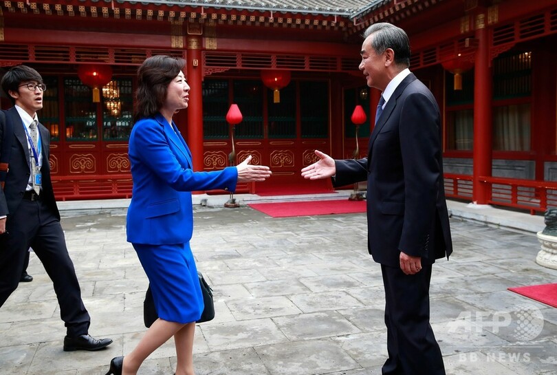 【8月26日 AFP】野田聖子(Seiko Noda)衆議院議員をはじめとする日本の議員団が26日、中国・北京の釣魚台迎賓館(Diaoyutai State Guesthouse)を訪れ、王毅(Wang Yi)外相と面会した。