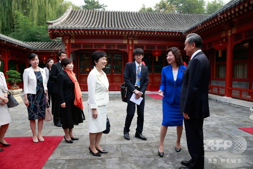 【8月26日 AFP】野田聖子(Seiko Noda)衆議院議員をはじめとする日本の議員団が26日、中国・北京の釣魚台迎賓館(Diaoyutai State Guesthouse)を訪れ、王毅(Wang Yi)外相と面会した。