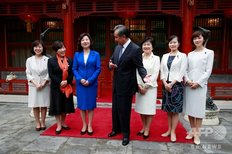 【8月26日 AFP】野田聖子(Seiko Noda)衆議院議員をはじめとする日本の議員団が26日、中国・北京の釣魚台迎賓館(Diaoyutai State Guesthouse)を訪れ、王毅(Wang Yi)外相と面会した。