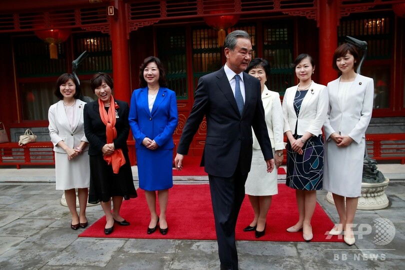 【8月26日 AFP】野田聖子(Seiko Noda)衆議院議員をはじめとする日本の議員団が26日、中国・北京の釣魚台迎賓館(Diaoyutai State Guesthouse)を訪れ、王毅(Wang Yi)外相と面会した。