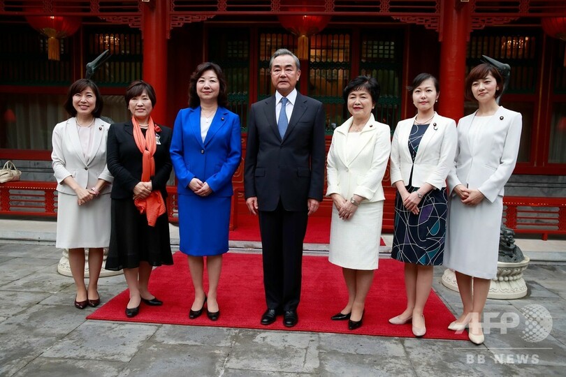 【8月26日 AFP】野田聖子(Seiko Noda)衆議院議員をはじめとする日本の議員団が26日、中国・北京の釣魚台迎賓館(Diaoyutai State Guesthouse)を訪れ、王毅(Wang Yi)外相と面会した。