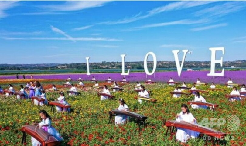 「万畝花海」は、襄垣県が自然保護と村おこしを目的に開発したプロジェクトだ。宝峰湖湿地公園と森林公園を中心に、四季を通じて緑豊かな空間を創造しようと、山や河川、森林、畑、湖を総合的に管理している。また、地元の村人たちに農家での宿泊や民芸商品の開発などのビジネスを奨励。農村を伝統的な農業から、観光産業や電子取引業などに転化させようとしている。(c)CNS/JCM/AFPBB News