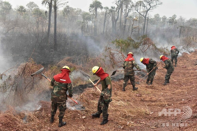 アマゾンの森林火災は近年最悪の規模となっており、国際社会からの批判を集めている。ボルソナロとマクロンの両大統領は火災をめぐり非難の応酬を続けてきた。一方、ドナルド・トランプ(Donald Trump)米大統領は27日、ボルソナロ氏の対応を擁護し、同氏が「素晴らしい仕事をしている」とツイッター(Twitter)に投稿。「完全かつ完璧な」米国の支援を約束した。