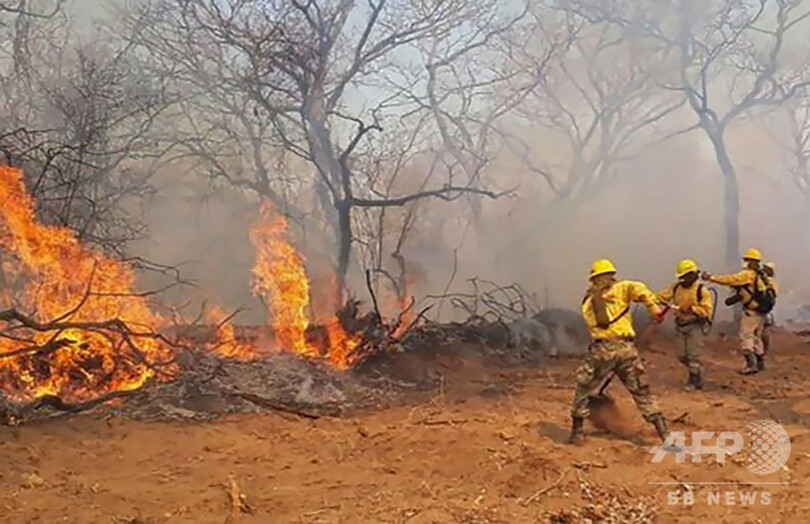 モラレス大統領はラジオ・パンアメリカーナに対し、隣国パラグアイのマリオ・アブド・ベニテス(Mario Abdo Benitez)新大統領との間で必要があれば空中消火機の越境を相互に認めることで合意したことも明らかにした。(c)AFP