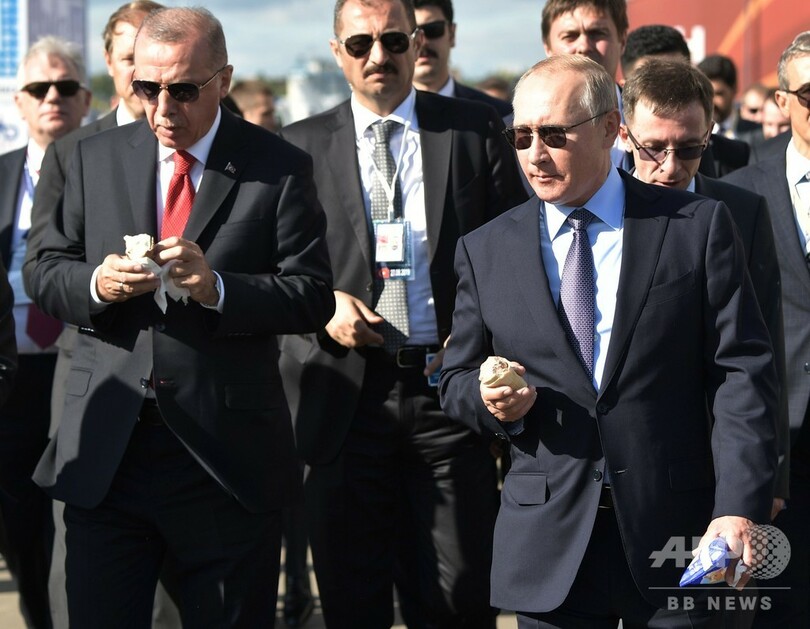 ロシアとトルコの大統領、航空ショーを視察 仲良くアイスを買い食い