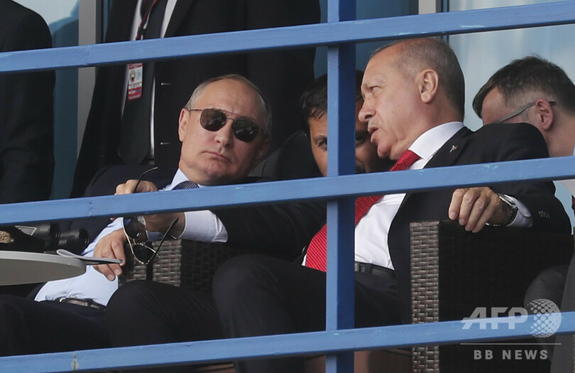 ロシアとトルコの大統領、航空ショーを視察 仲良くアイスを買い食い