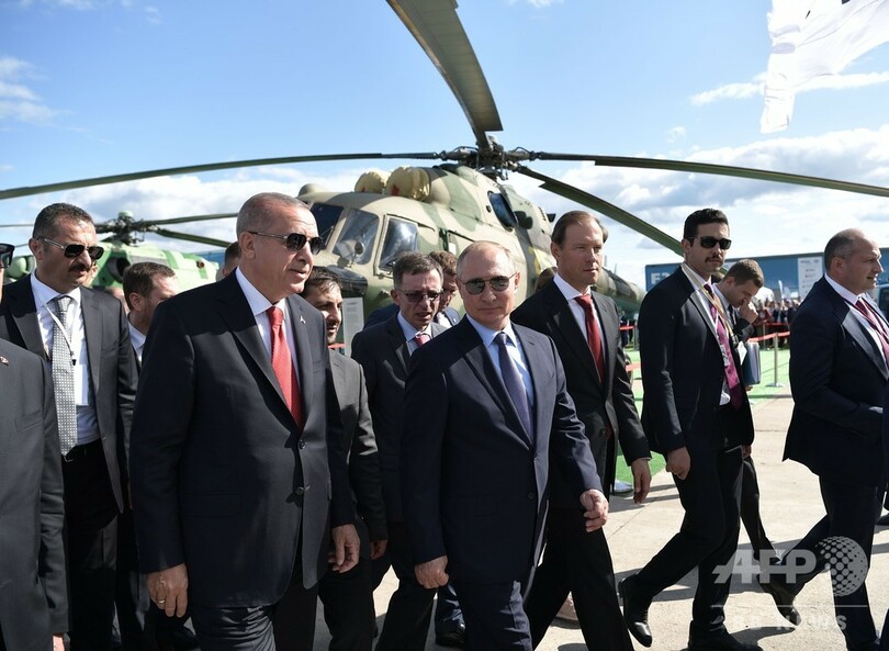 ロシアとトルコの大統領、航空ショーを視察 仲良くアイスを買い食い