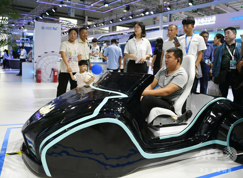 会場では5G通信に関する最新技術を応用した医療、教育、スマートエネルギー、遠隔操縦運転、新世代ロボットなどが展示され、来場者は体験型の設備を利用し、「スマートライフ」を楽しんだ。北東アジア博覧会は8月23日から27日まで開催された。(c)CNS/JCM/AFPBB News