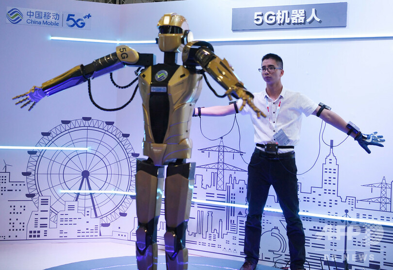 会場では5G通信に関する最新技術を応用した医療、教育、スマートエネルギー、遠隔操縦運転、新世代ロボットなどが展示され、来場者は体験型の設備を利用し、「スマートライフ」を楽しんだ。北東アジア博覧会は8月23日から27日まで開催された。(c)CNS/JCM/AFPBB News