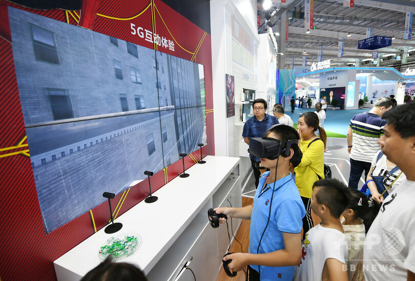 会場では5G通信に関する最新技術を応用した医療、教育、スマートエネルギー、遠隔操縦運転、新世代ロボットなどが展示され、来場者は体験型の設備を利用し、「スマートライフ」を楽しんだ。北東アジア博覧会は8月23日から27日まで開催された。(c)CNS/JCM/AFPBB News