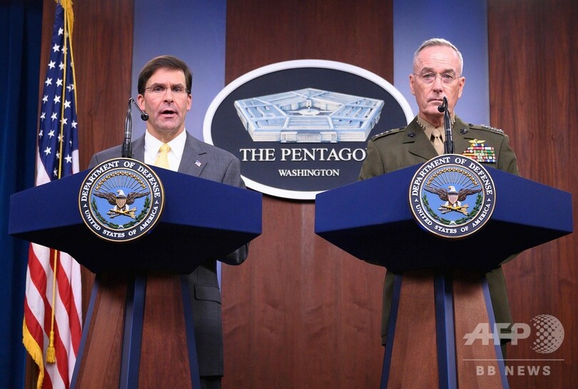 ジョセフ・ダンフォード(Joseph Dunford)統合参謀本部議長も同じ記者会見で、現時点では韓国のGSOMIA破棄通告による軍事活動への影響は見られないと述べたが、エスパー氏と同様に懸念も表明した。(c)AFP