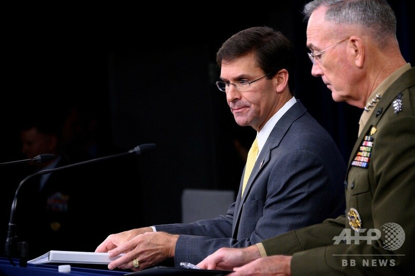 ジョセフ・ダンフォード(Joseph Dunford)統合参謀本部議長も同じ記者会見で、現時点では韓国のGSOMIA破棄通告による軍事活動への影響は見られないと述べたが、エスパー氏と同様に懸念も表明した。(c)AFP