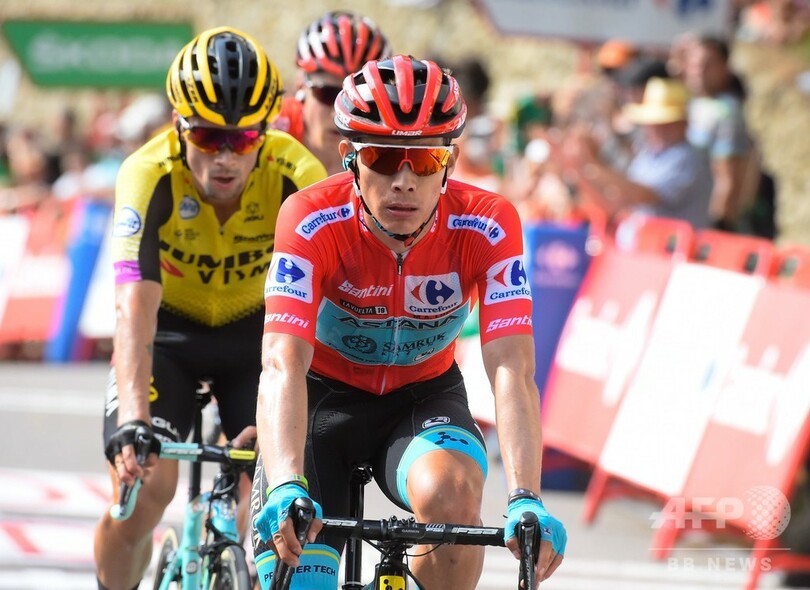 今ステージでメイン集団についていくことができず、赤ジャージー(マイヨ・ロホ)をトゥーンスに明け渡したアスタナ(Astana Pro Team)のミゲル・アンヘル・ロペス(Miguel Angel Lopez、コロンビア)は、総合順位でタイムを大きく落とした。(c)AFP
