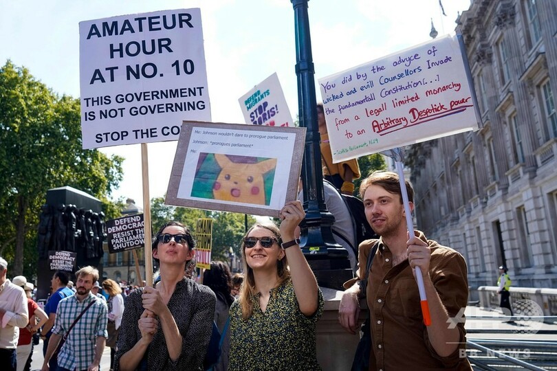 【9月1日 AFP】英国各地で8月31日、欧州連合(EU)離脱(ブレグジット、Brexit)期限直前の10月半ばまで議会を閉会すると宣言したボリス・ジョンソン(Boris Johnson)首相に対する抗議デモが行われた。
