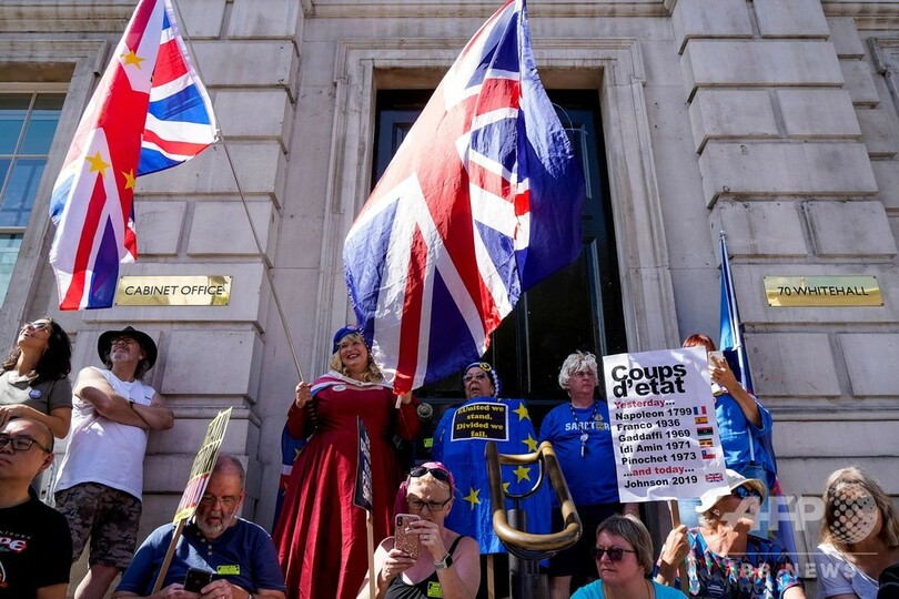 【9月1日 AFP】英国各地で8月31日、欧州連合(EU)離脱(ブレグジット、Brexit)期限直前の10月半ばまで議会を閉会すると宣言したボリス・ジョンソン(Boris Johnson)首相に対する抗議デモが行われた。