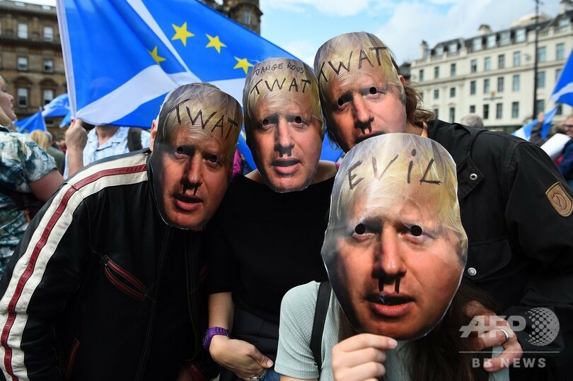 【9月1日 AFP】英国各地で8月31日、欧州連合(EU)離脱(ブレグジット、Brexit)期限直前の10月半ばまで議会を閉会すると宣言したボリス・ジョンソン(Boris Johnson)首相に対する抗議デモが行われた。