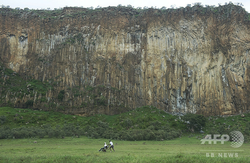 1984年設立のヘルズゲート国立公園はナイロビの北西約100キロ、ナイバシャ湖(Lake Naivasha)のすぐ南にあり、その景観は米ディズニー(Disney)の映画『ライオンキング(The Lion King)』の制作でも参考にされた。公園内には3つの地熱発電所もある。(c)AFP