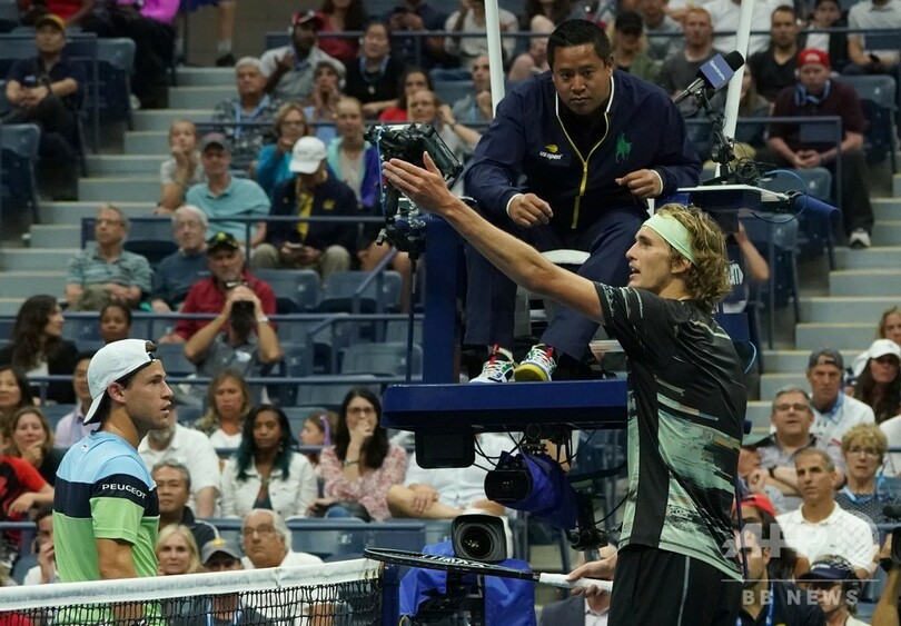 雨に見舞われて屋根が閉じられたアーサー・アッシュ・スタジアム(Arthur Ashe Stadium)で、ズベレフは第1セットを簡単にものにしたものの、合計17本のダブルフォールトと65本のアンフォーストエラーを犯すと、さらには悪態をついてポイントペナルティーも受け、逆転負けを喫した。