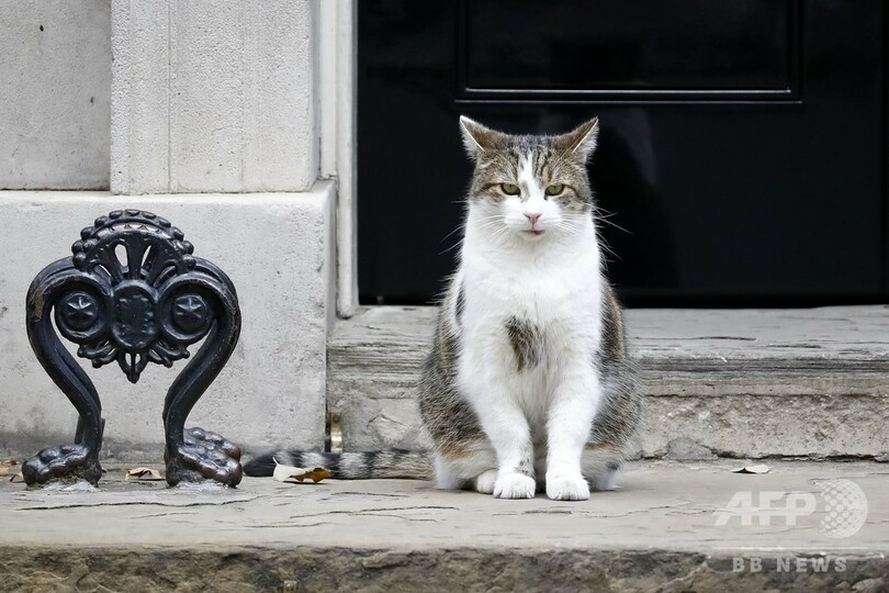 子犬は救助犬として知られるジャックラッセルテリアの雄で、英動物愛護団体「フレンズ・オブ・アニマルズ・ウェールズ(Friends of Animals Wales)」が保護していた。だが、首相官邸には長年、猫のラリー(Larry)が住んでおり、この日も官邸の玄関前に姿を見せた。(c)AFP