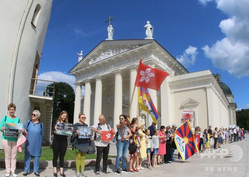 同日にはリトアニアの首都ビリニュスにある中央広場でも、同じように100人超が集まって手を握り合い、香港の民主派活動家らとの連帯を示した。