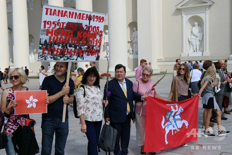 同日にはリトアニアの首都ビリニュスにある中央広場でも、同じように100人超が集まって手を握り合い、香港の民主派活動家らとの連帯を示した。