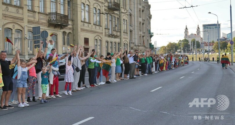 同日にはリトアニアの首都ビリニュスにある中央広場でも、同じように100人超が集まって手を握り合い、香港の民主派活動家らとの連帯を示した。