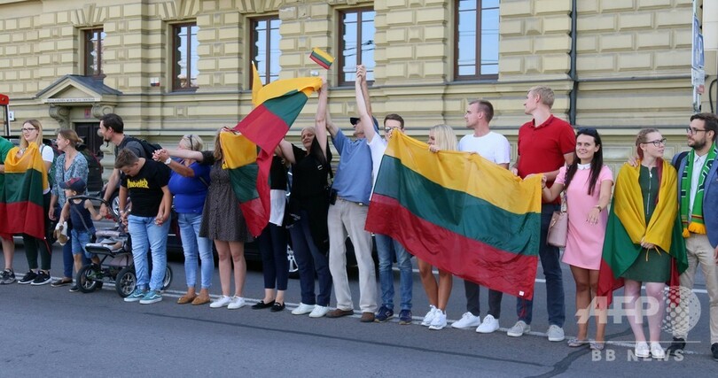 同日にはリトアニアの首都ビリニュスにある中央広場でも、同じように100人超が集まって手を握り合い、香港の民主派活動家らとの連帯を示した。