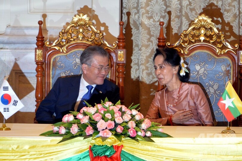 【9月4日 AFP】韓国の文在寅(ムン・ジェイン、Moon Jae-in)大統領は3日、ミャンマーを訪問し、アウン・サン・スー・チー(Aung San Suu Kyi)国家顧問やウィン・ミン(Win Myint)大統領と会談した。(c)AFP
