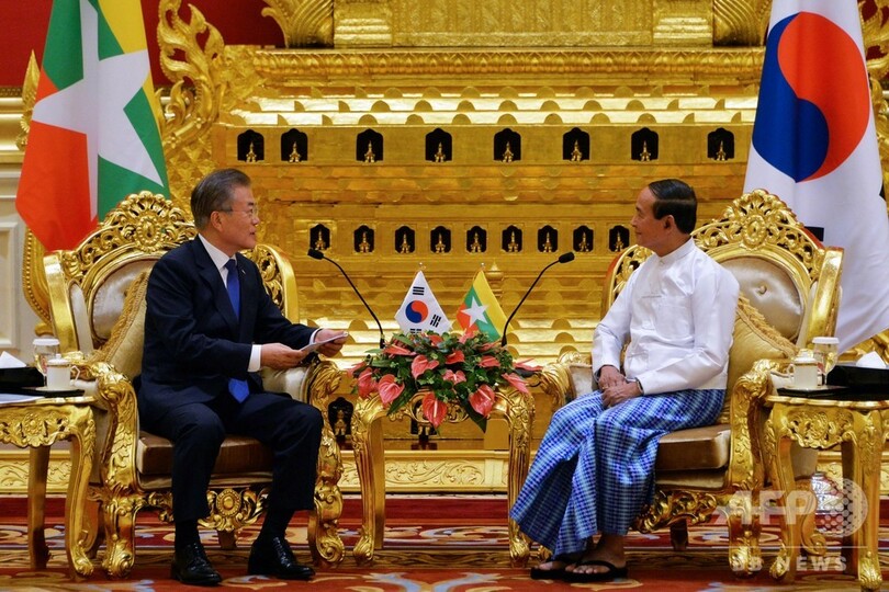 【9月4日 AFP】韓国の文在寅(ムン・ジェイン、Moon Jae-in)大統領は3日、ミャンマーを訪問し、アウン・サン・スー・チー(Aung San Suu Kyi)国家顧問やウィン・ミン(Win Myint)大統領と会談した。(c)AFP