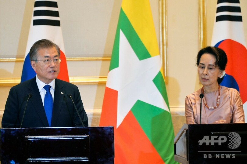 【9月4日 AFP】韓国の文在寅(ムン・ジェイン、Moon Jae-in)大統領は3日、ミャンマーを訪問し、アウン・サン・スー・チー(Aung San Suu Kyi)国家顧問やウィン・ミン(Win Myint)大統領と会談した。(c)AFP