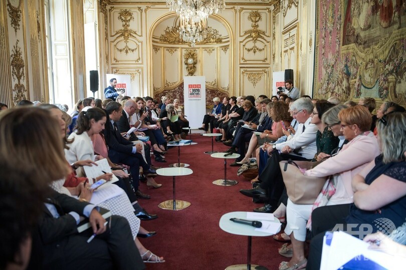 フランスでは、現在のパートナーや元パートナーらに殺害される女性が多く、世論の怒りが高まっている。2017年の欧州連合(EU)の統計によると、フランスは欧州諸国の中でドイツに次いで2番目にDVによる女性の殺人件数が多いという。去年だけでも121人の女性がDV関連で殺害されており、3日に1人が犠牲になっている。また今年現時点でのDV殺人の被害者はすでに少なくとも100人以上に上っている。(c)AFP