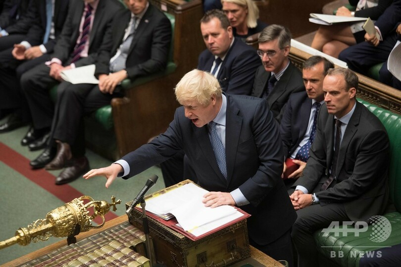 【9月5日 AFP】英下院は4日、英国の欧州連合(EU)離脱(ブレグジット、Brexit)の延期をボリス・ジョンソン(Boris Johnson)首相に求める法案をめぐる1回目の採決を行い、同法案の大筋を29票差の賛成多数で承認した。「合意なき離脱」の回避に向け大きく前進した形だ。