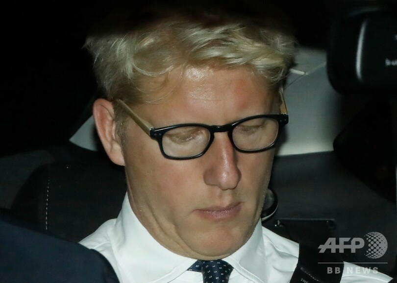演説の数時間前には、弟のジョー・ジョンソン(Jo Johnson)氏が大学・科学担当の閣外相辞任を表明。ジョンソン氏は演説の中で弟の辞任に遺憾の意を表明した。同氏の辞任を受け、政府が危機にあるとの見方が強まっている。(c)AFP/Alice RITCHIE