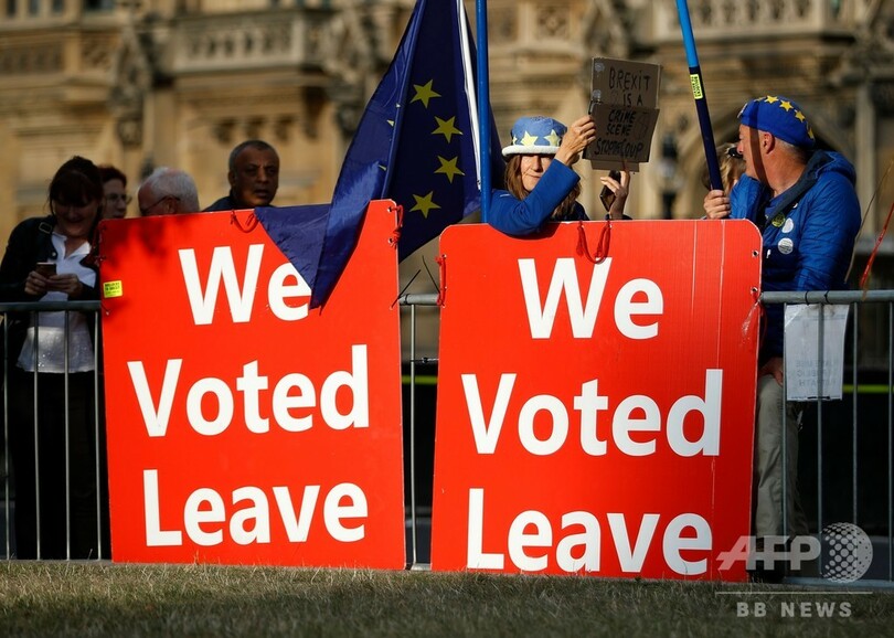 イングランド北部ヨークシャー(Yorkshire)地方のウェークフィールド(Wakefield)で演説したジョンソン氏は、EUにブレグジットの延期を求めるならば「のたれ死んだほうがまし」と明言。「われわれは10月31日にEUから離脱しなければならない」と主張した。