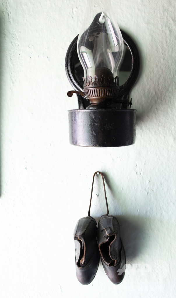 ギャラガーさんの一日は、近くで湧き水をくんでくることから始まる。燃料のまきと泥炭をくべた暖炉で、1日3食を調理する。暖炉の火と石油ランプとろうそく、これらがギャラガーさんの家を照らす明かりだ。