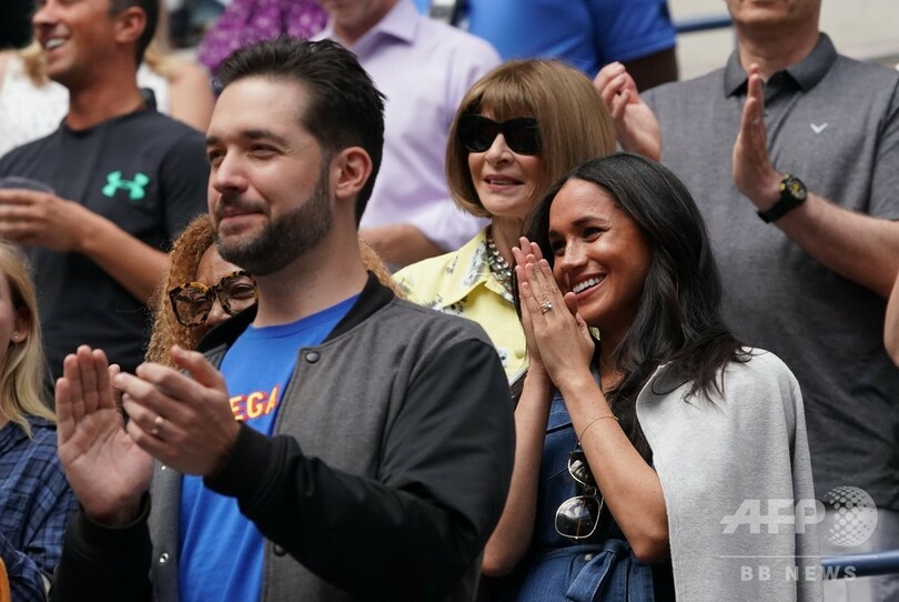 メーガン妃は、セレーナの姉ヴィーナス・ウィリアムス(Venus Williams、米国)やファッション誌「ヴォーグ(Vogue)」米国版のアナ・ウィンター(Anna Wintour)編集長らと共にファミリーボックスから声援を送った。
