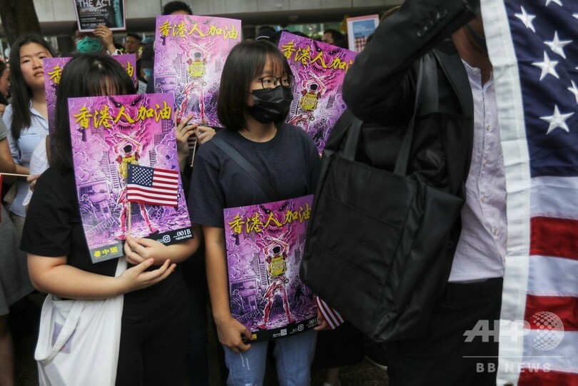 香港民主派、米領事館前にデモ行進 トランプ氏に「香港解放」求める声も