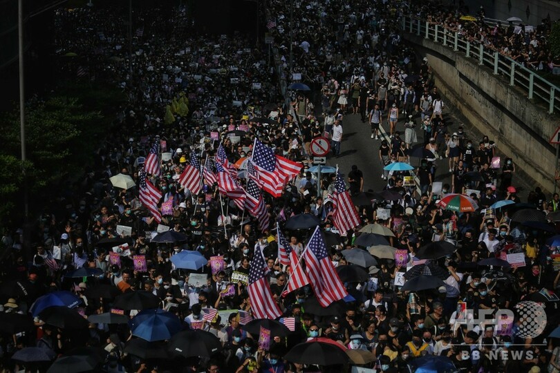 香港民主派、米領事館前にデモ行進 トランプ氏に「香港解放」求める声も