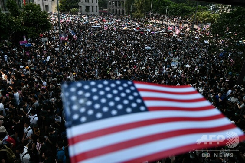 香港民主派、米領事館前にデモ行進 トランプ氏に「香港解放」求める声も