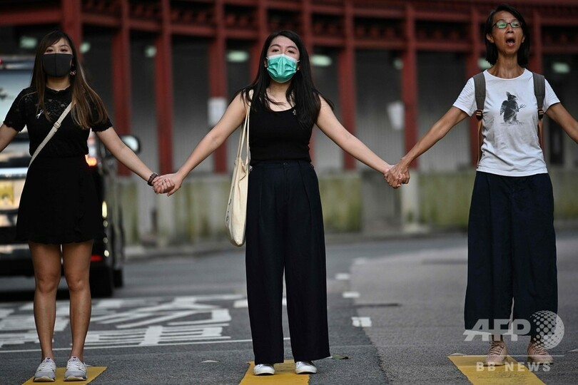 【9月9日 AFP】香港で9日早朝、複数の学校の生徒や卒業生、教師らが手をつないで「人間の鎖」をつくり、香港政府に5つの要求を受け入れるよう訴える抗議デモを行った。