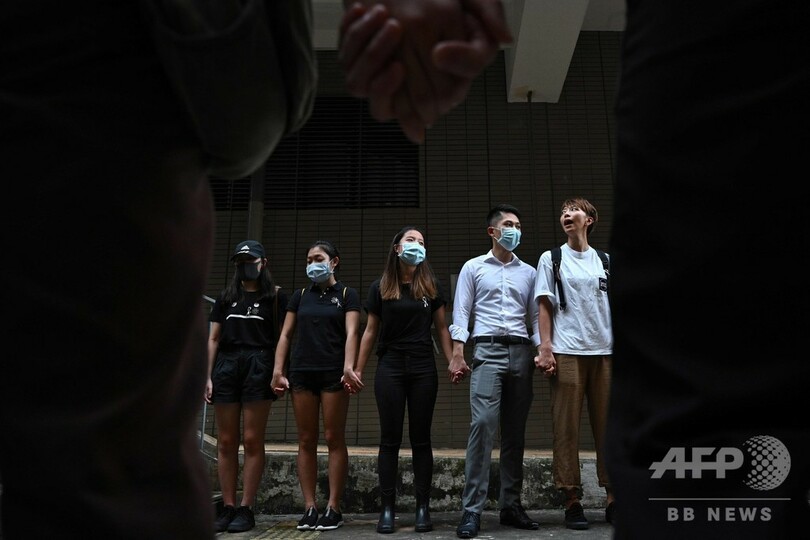 【9月9日 AFP】香港で9日早朝、複数の学校の生徒や卒業生、教師らが手をつないで「人間の鎖」をつくり、香港政府に5つの要求を受け入れるよう訴える抗議デモを行った。