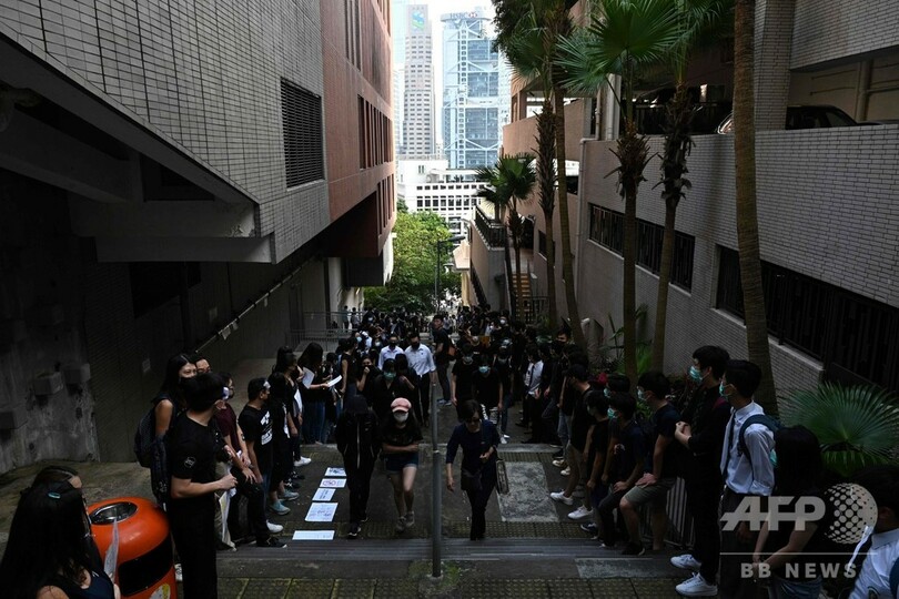 【9月9日 AFP】香港で9日早朝、複数の学校の生徒や卒業生、教師らが手をつないで「人間の鎖」をつくり、香港政府に5つの要求を受け入れるよう訴える抗議デモを行った。