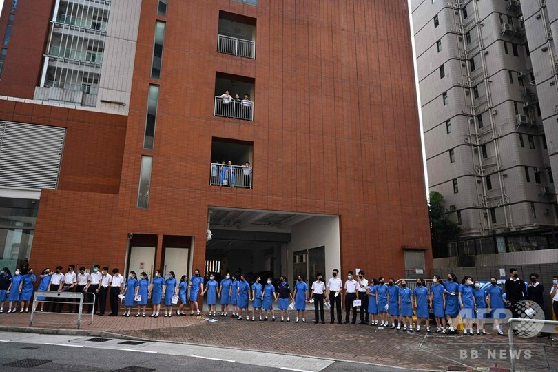 【9月9日 AFP】香港で9日早朝、複数の学校の生徒や卒業生、教師らが手をつないで「人間の鎖」をつくり、香港政府に5つの要求を受け入れるよう訴える抗議デモを行った。