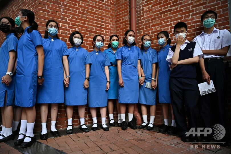 香港の生徒ら、また「人間の鎖」で政府に抗議