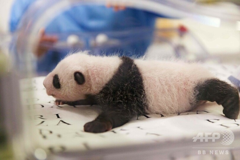 白黒模様もはっきり ベルギーのパンダ、生後1か月に