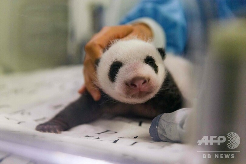 白黒模様もはっきり ベルギーのパンダ、生後1か月に