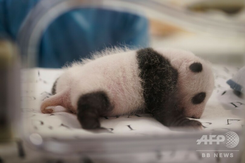 白黒模様もはっきり ベルギーのパンダ、生後1か月に