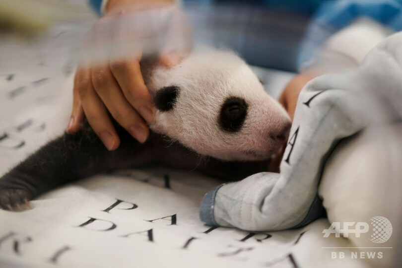 白黒模様もはっきり ベルギーのパンダ、生後1か月に