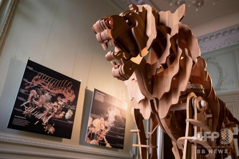 ライオンロボットは木製で、高さ2メートル、長さ3メートル。ダビンチが残した初期段階のスケッチ画を基に再現されている。